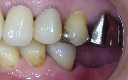 70代女性 虫歯の再発で外れた金属の被せ物をe-maxで修復した症例