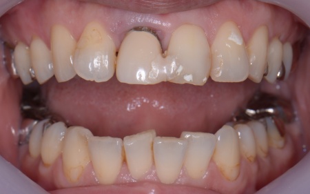 以上のことから、審美性と機能性を回復するために、前歯の治療と歯並びを改善する治療を併せて行う必要があると診断しました。
