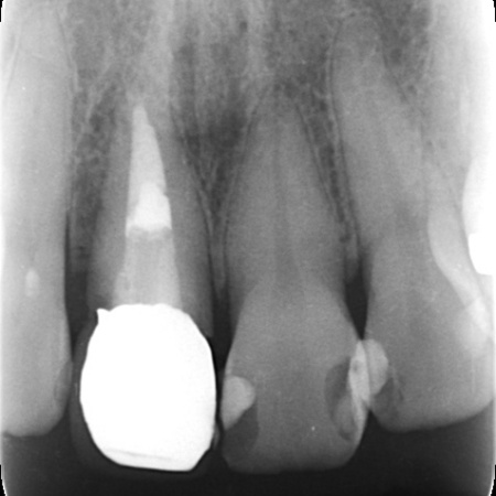 また上下前歯はやや歯並びの乱れがあり、これによって噛み合わせのバランスが崩れて、特定の歯に過度な力がかかっていたことが、歯根が折れる原因になったと考えられます。