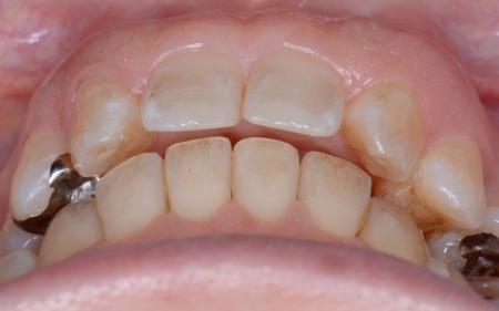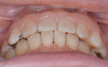さらに患者様は全体的に歯並びや噛み合わせに問題があり、特に上下の前歯は噛んだ際に隙間ができ食べ物を噛み切りにくい状態です。