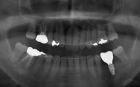 左下奥歯はこのまま放置すると細菌感染を引き起こすため抜歯が必要なこと、抜歯後に歯を補うため人工歯根を利用したインプラント治療を提案し、同意いただきました。