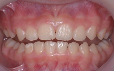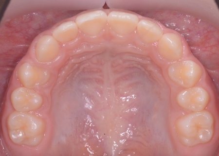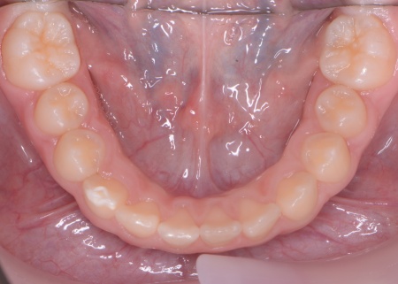 また上下ともにあごの骨の発達が不十分で歯並びの幅が狭いため、このまま放置するとすべての歯が永久歯に生え変わったときに正しい位置に並ばず、歯並びが全体的に大きくデコボコになることが予想されました。