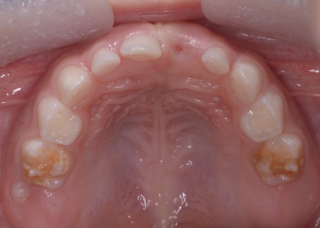 これから永久歯が生えてきますが、すでに左右の歯が寄ってきており、このままではスペースが足りず正常に生えてこない可能性があります。