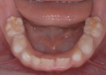 「下前歯の乳歯が抜けたが、永久歯が生える隙間が足りないのではないか」と親御様からご相談いただきました。
