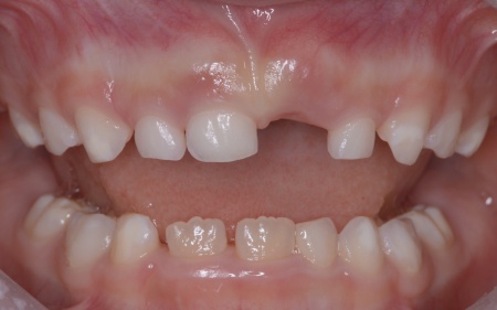 拝見したところ、右下前歯の乳歯が本来抜ける時期より早くに抜けていました。