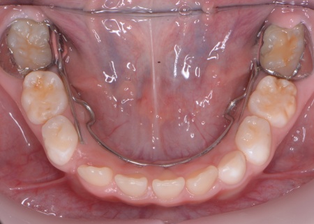 下あごには、歯並びの幅を広げるためのリンガルアーチを装着しました。