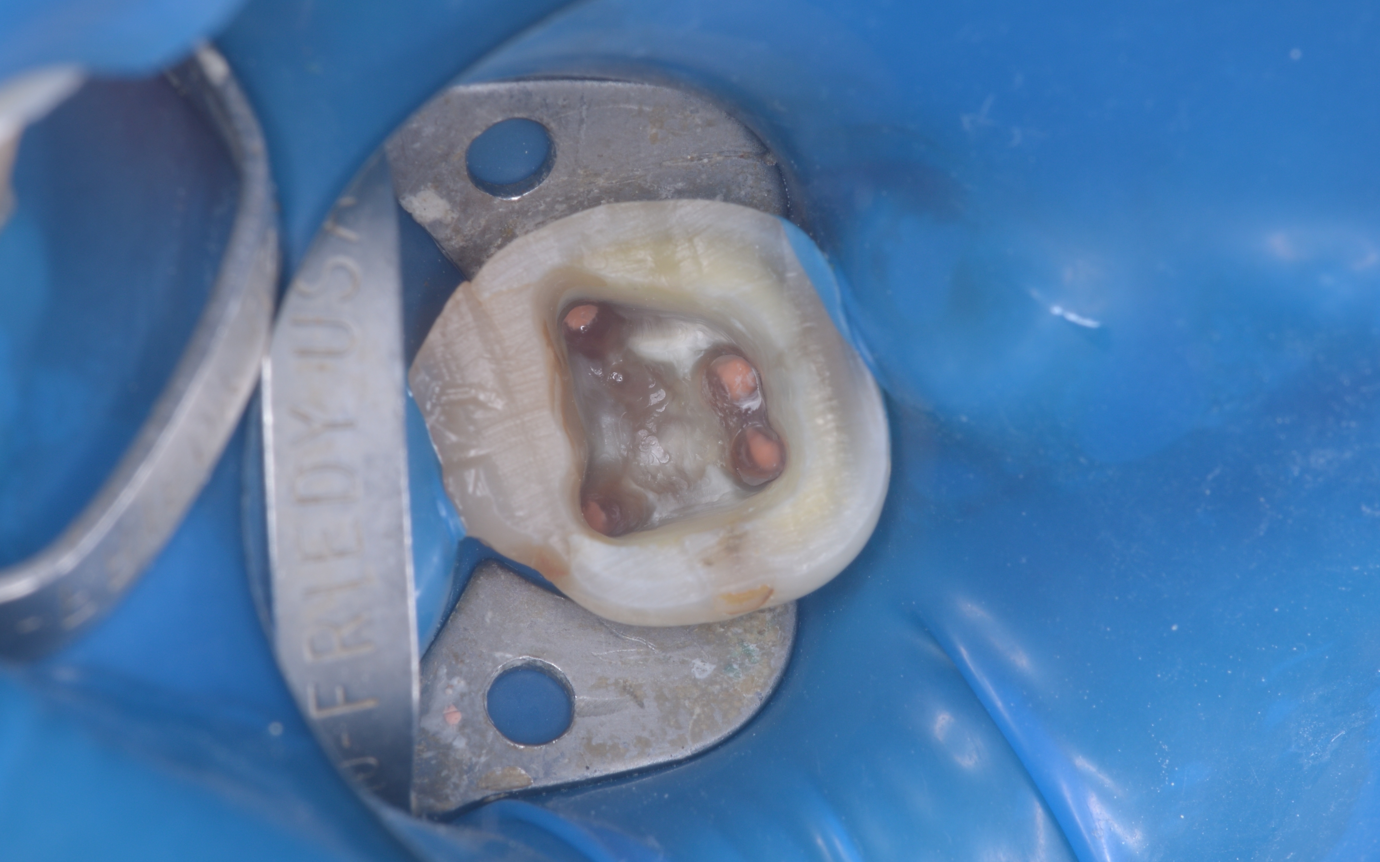 続いて、歯の土台となるファイバー支台(ファイバーコア)を作製します。