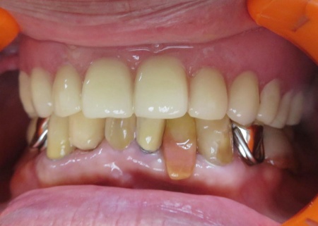 80代男性 金属バネが折れた部分入れ歯を即日修理して使用できるようにした症例
