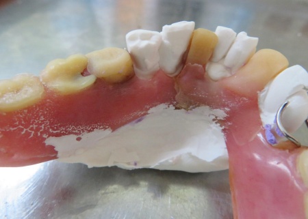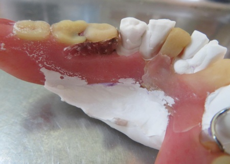 まずは入れ歯を装着した状態で型取りを行い、模型を作製します。