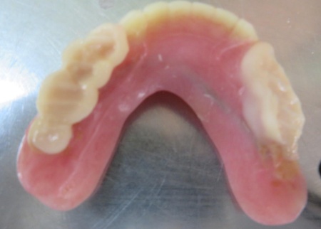 以上のことから、噛み合わせを整えるために入れ歯を修理する必要があると診断しました。