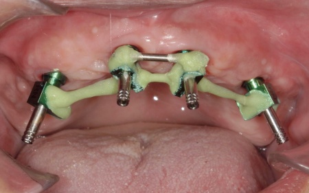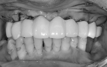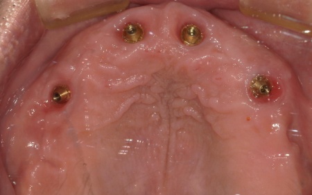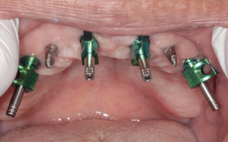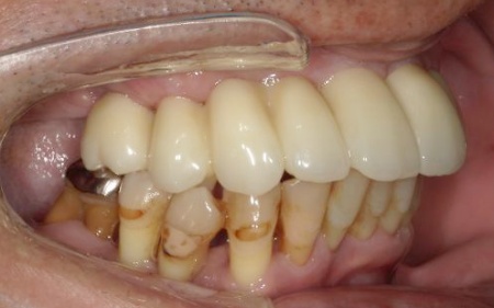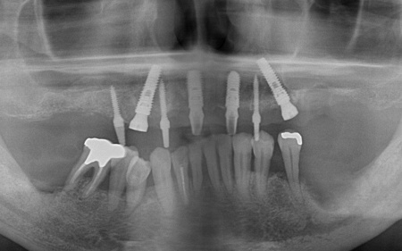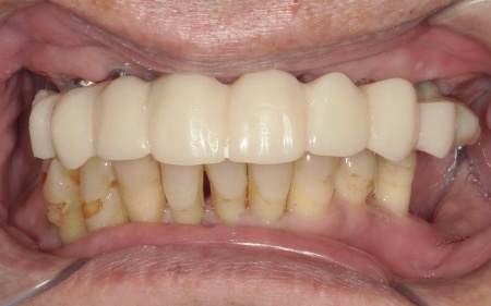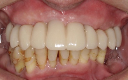 また、患者様は重度の歯周病によって歯を支える骨が減少し全体的に歯が揺れていました。