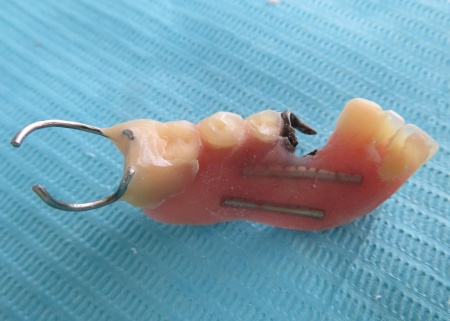 50代女性 割れた入れ歯に金属の補強線を埋め込む修理を行った症例