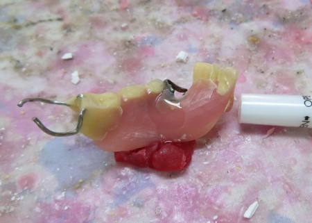 模型上で修理を行うことで、口の中でしっかりと合う入れ歯に仕上げることができます。