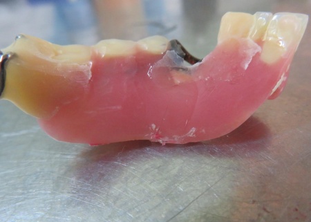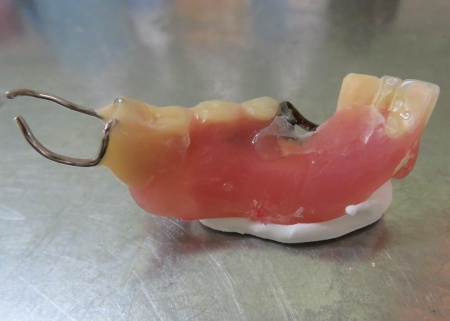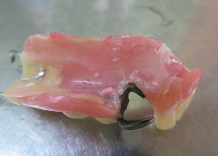 診断内容をお伝えしたうえで、割れた入れ歯の修理を提案しました。