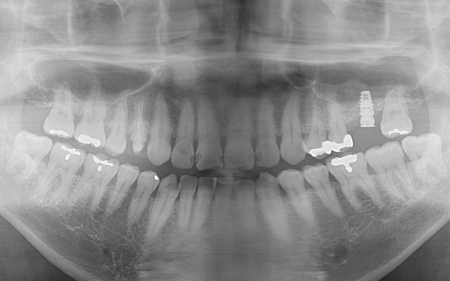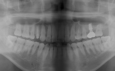 左上奥歯1本は抜き、GBRで骨を再生させたのち、インプラントを埋入します。