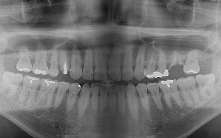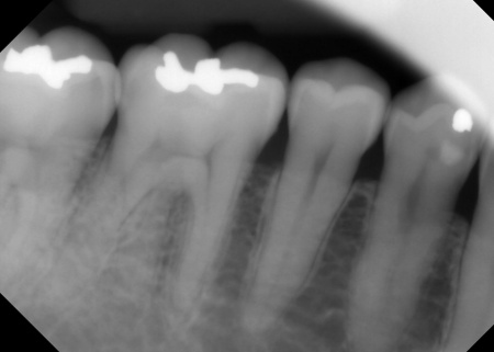 レントゲン撮影をして詳しく検査したところ、複数の小さな虫歯が見られました。