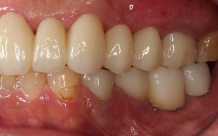 左下奥歯1本、右下奥歯2本に装着されていた古い被せ物はすべて外し、ジルコニアクラウンと交換しました。