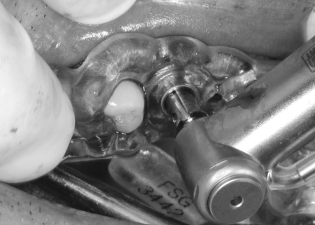 他院で治療を行った左下奥歯3本のインプラントは、土台をそのまま活かして人工歯だけ作り直し、噛み合わせを調整します。