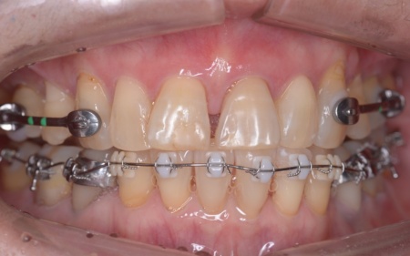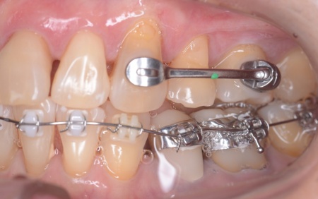 まずはワイヤー矯正を行い、ある程度まで歯並びを整えます。