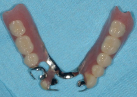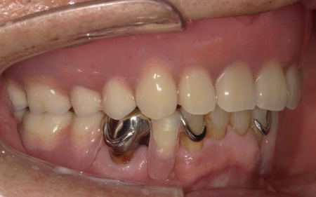また、下顎は保険診療の部分入れ歯を再作製し、上下の噛み合わせの回復を図りました。