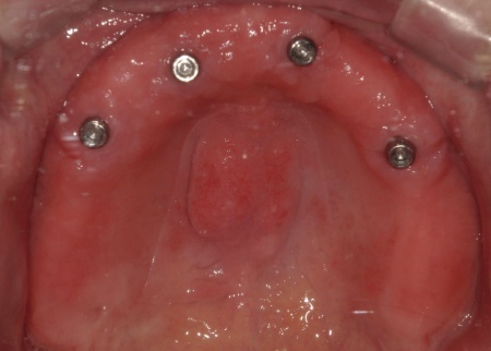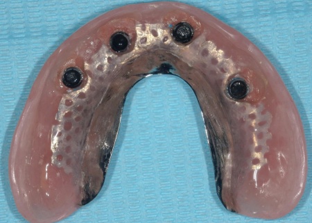 次に、上顎には「インプラント支持型義歯(インプラントオーバーデンチャー)」を金属床義歯で作製します。