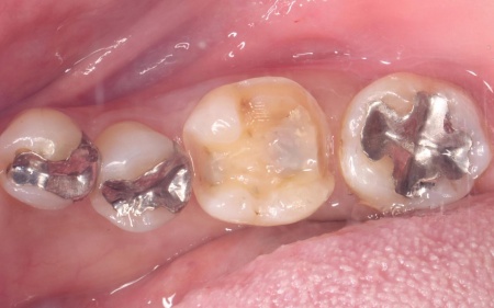 40代女性 欠けた古い詰め物を除去して審美性に優れたE-MAXアンレーで修復した症例