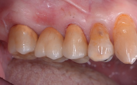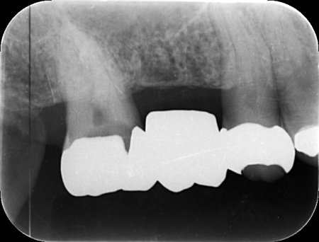 70代男性 再発した虫歯に歯髄温存療法を施したあとセラミックブリッジを装着した症例