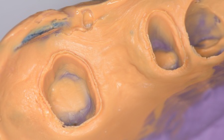 神経が温存できていることを確認できたため精密な型取りを行い、虫歯の再発リスクが低く強度も高いセラミックのジルコニアでブリッジを新たに作製しました。