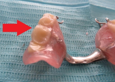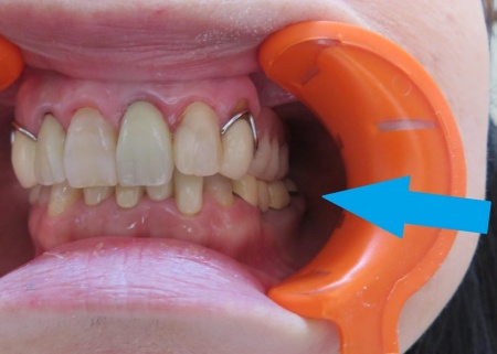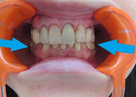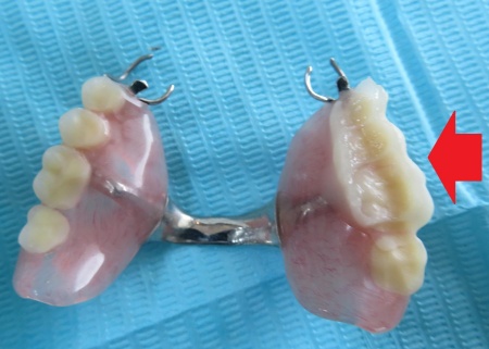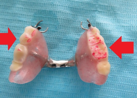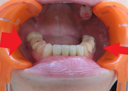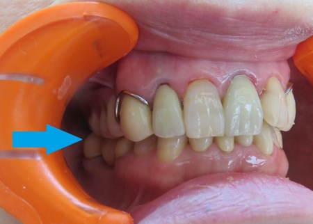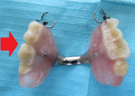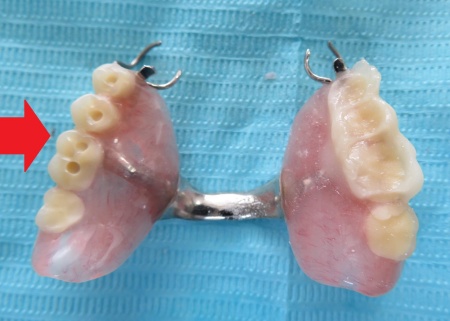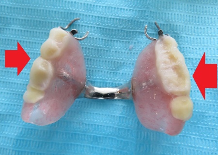 拝見したところ、上の奥歯には左右とも部分入れ歯が装着されていました。