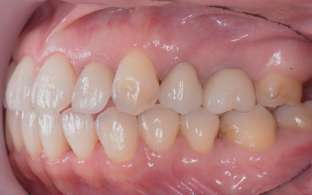 修復治療が必要でしたがこの噛み合わせの問題を改善しないまま行うと、治療した歯に再び過度な力が加わって被せ物の破損・脱離や虫歯の再発を招くリスクが高まります。