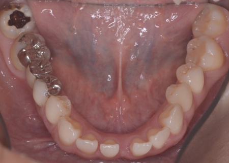 また、噛み合わせを確認したところ、奥歯で噛み合わせた際に上下の前歯が当たらず隙間ができる開咬(かいこう)が認められました。