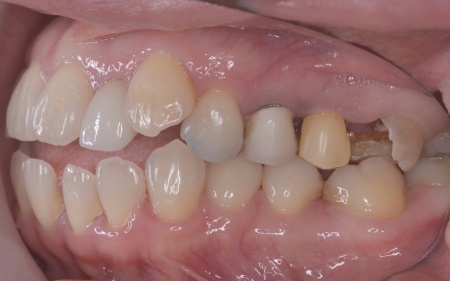 「左下の奥歯が欠けたのと、右上の差し歯が取れた」とご相談いただきました。