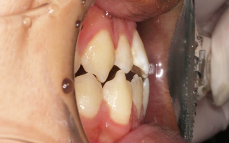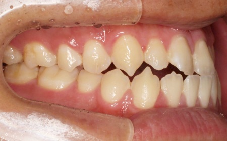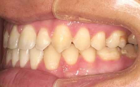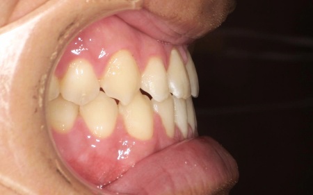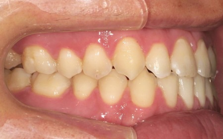 また、上下前歯の接触により下顎を前に出しにくく、後ろへ押し込まれやすい咬み合わせとなっています。