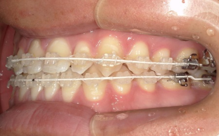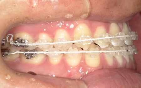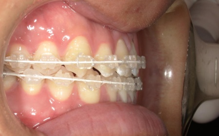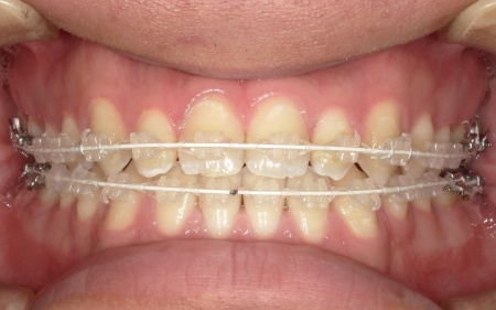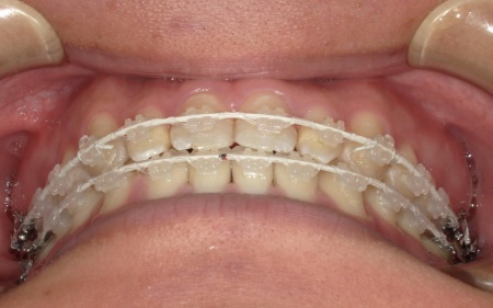 ②白色(セラミック)のブラケットとホワイトワイヤーを用いたセラミックブラケット矯正