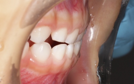 装置の使用を継続していただいた結果、反対咬合の改善が認められました。