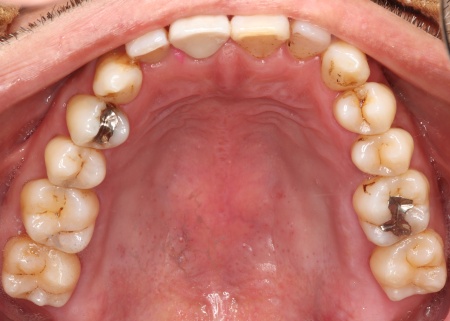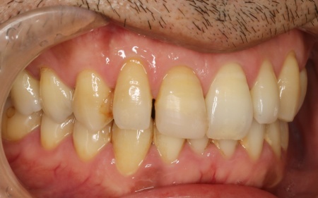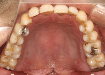 治療途中のまま時間が経過しており、歯の形や噛み合わせが整っていませんでした。