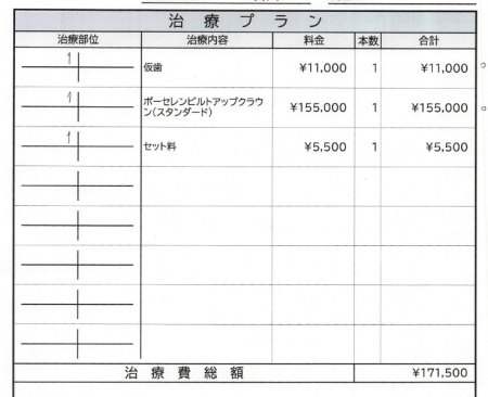 診断結果をもとに、前歯を被せ物(クラウン)で修復する治療を提案し、同意いただきました。