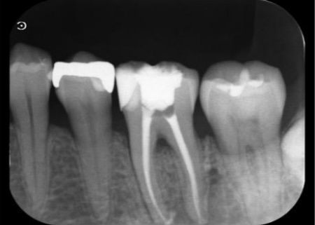 最後に、治療後のレントゲンで4本すべての根管に充填材が緊密に行き渡っていること、処置部位に問題がないことを確認して、治療を終了しました。