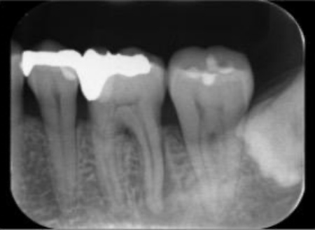 拝見したところ、歯ぐきが腫れてきた左下奥歯は過去に治療を受けられていました。