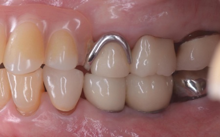 拝見したところ、患者様は左下の奥歯が2本欠損しており、そこに部分入れ歯が装着されていました。