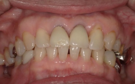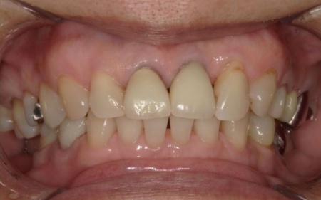 また、手前の歯にも新しい被せ物を装着しました。